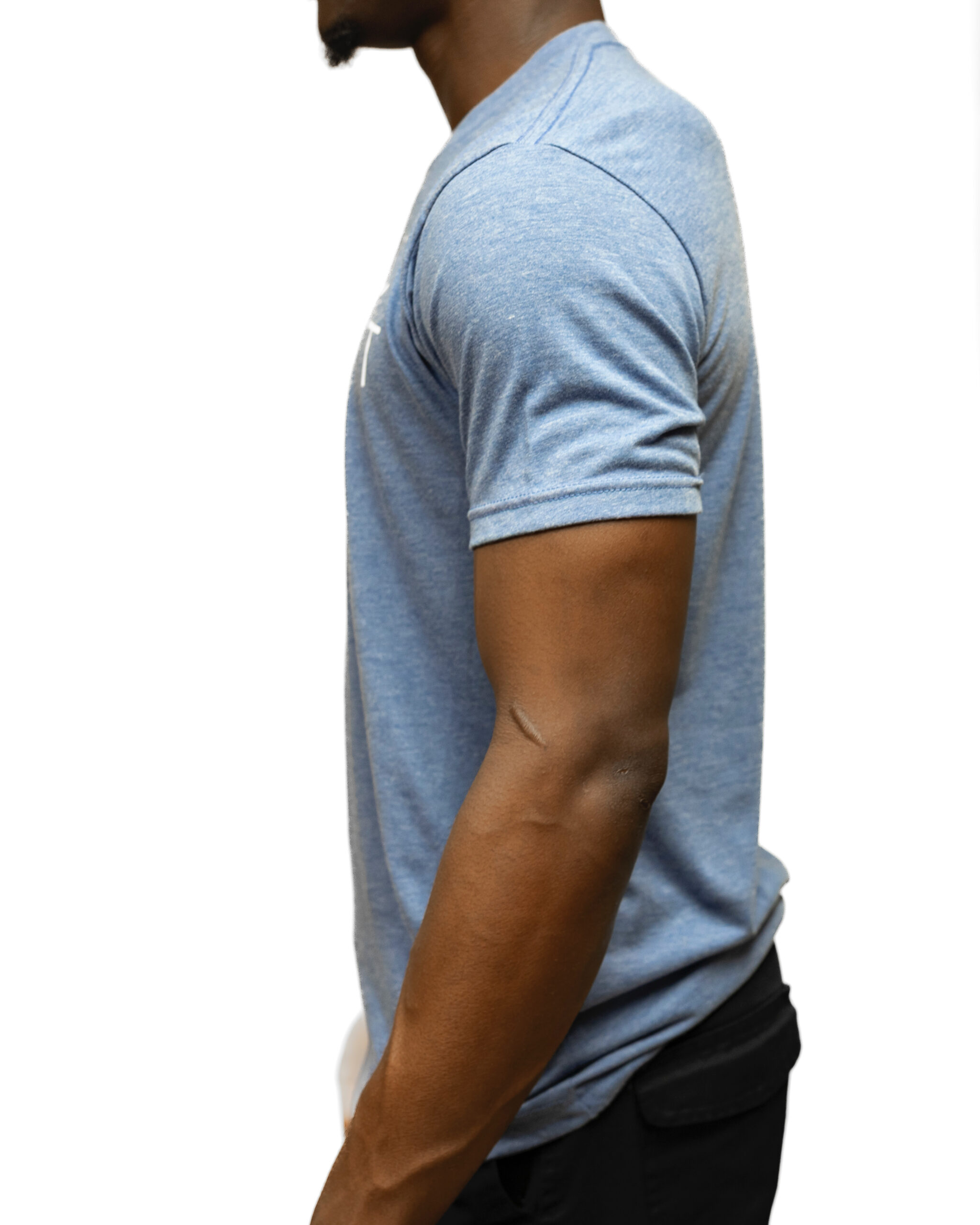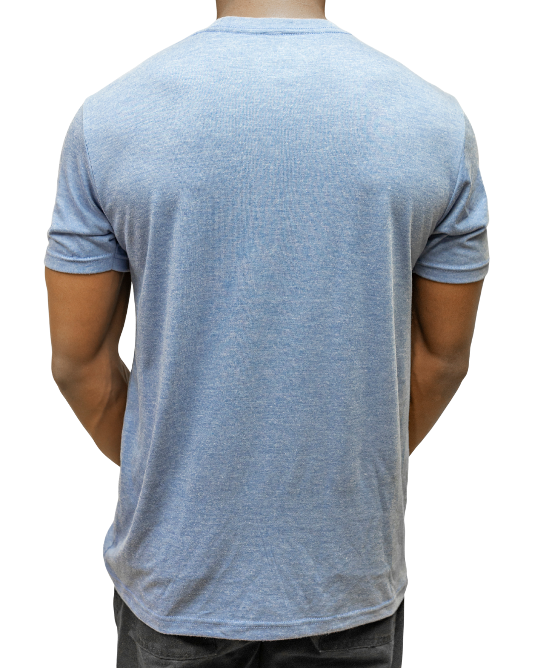 60/40 combed ring-spun cotton/polyester. Fabric laundered. Set-in CVC 1×1 baby rib collar. Side seams.